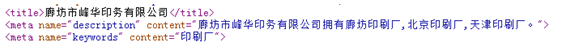 既能体现出印刷厂而能体现出廊坊印刷厂,而且我在这个地方做的关键词密度不是很多的因为还有网站的图片ALT我们同时也是要做的这个也是可以体现出要做的关键词的: